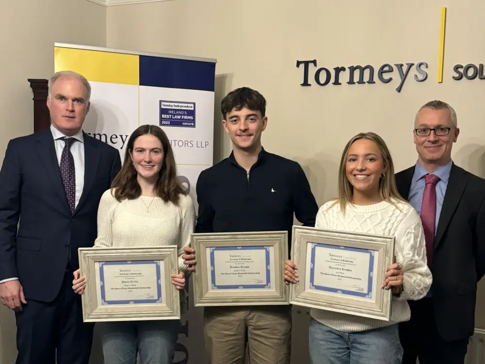 Tormeys Solicitors LLP, one of the longest established and largest legal firms in the Midlands, were delighted to announce the winners of the Barra Flynn Memorial Scholarship 2024 following a presentation at their offices recently.